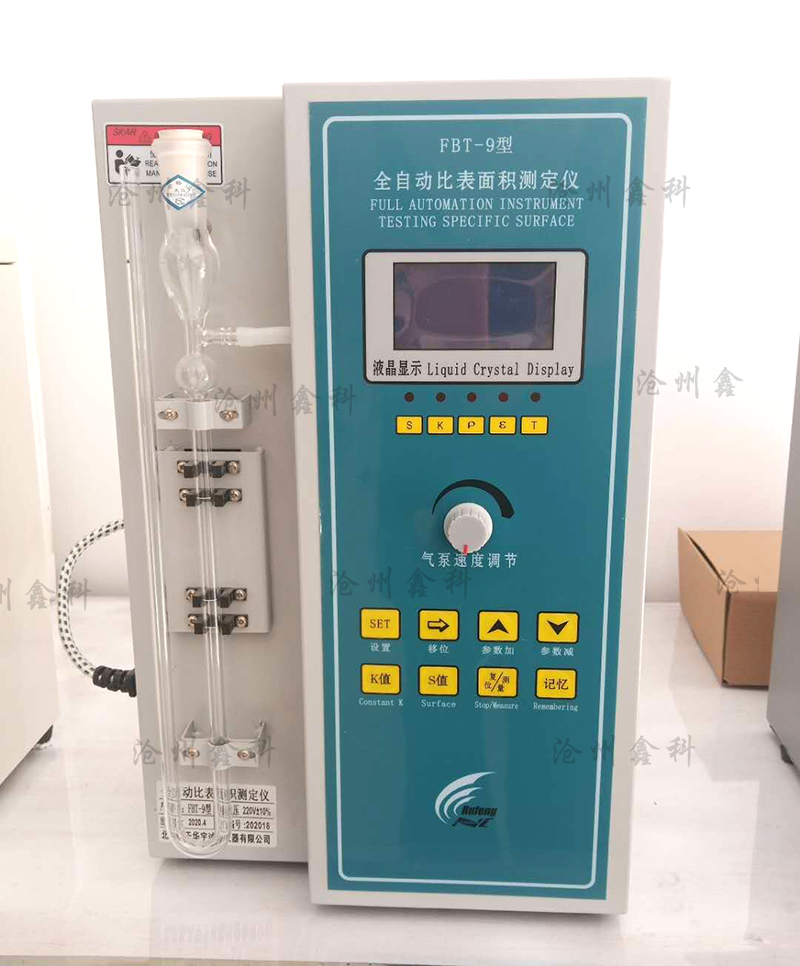 FBT-9型數(shù)顯勃氏透氣比表面積儀采用高可靠單片機和集成電路,軟、硬件采用多種抗干擾技術(shù),采用EEPROM存儲現(xiàn)場的工作數(shù)據(jù),具有停、掉電數(shù)據(jù)不丟失,自動計時,自動測溫,自動檢測水位,自動檢測儀器工作狀態(tài),自動計算并顯示結(jié)果,全自動測量,無人為誤差,簡單準確訊速方便。主要根據(jù)標準GB8074-2008《水泥比表面積測定方法》的有關(guān)規(guī)定,并參照美國ASTMC204-75透氣法改進制成?;驹硎遣捎靡欢康目諝猓高^具有一定空隙率和一定厚度的壓實粉層時所受的阻力不同而進行測定的。它主要用于測定水泥的比表面積,也可用作測定陶瓷、磨料、金屬、煤炭、食品、火藥等粉狀物料的比表面積。